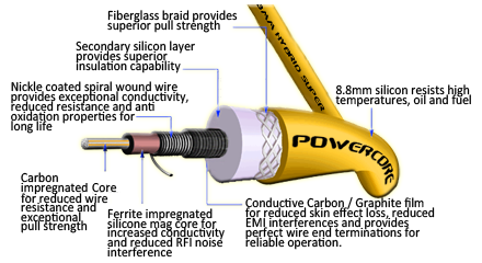 PowerCORE wires use a graphite / carbon film around the CORE ensuring oxidization does not set in reducing the electrical conductivity of the cable over time. All this ensures reliable operation during every engine start up for the life of your engine.